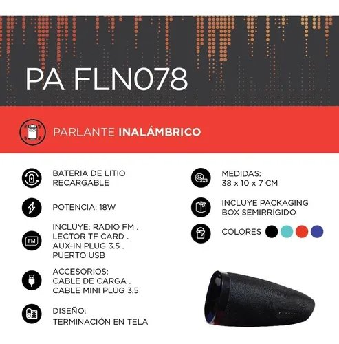 *Incluye: Puerto USB, Lector TF card *Radio FM Aux-in plug 3.5
