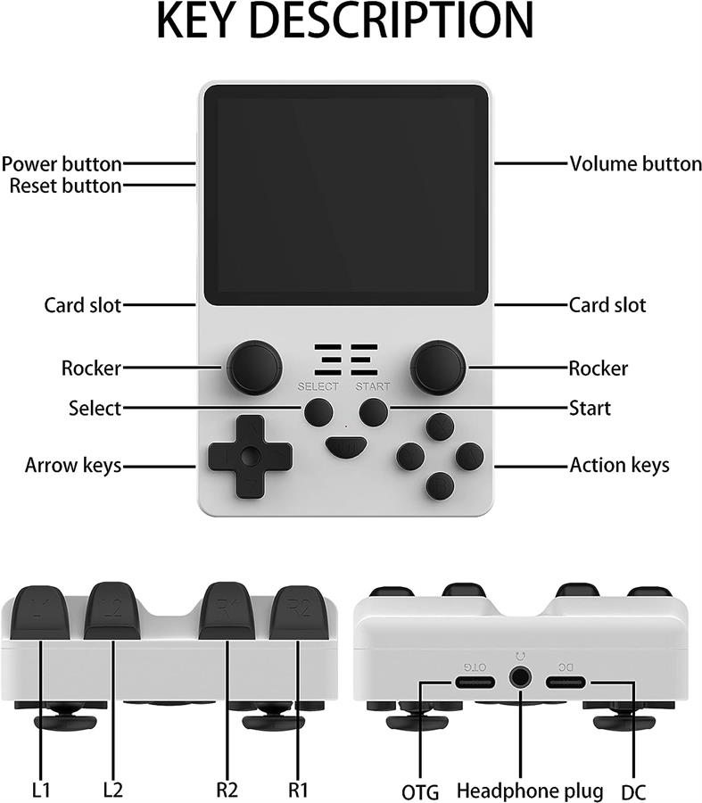 . CPU: RK3326 de cuatro núcleos y 1,5 GHZ, CPU A35 de cuatro núcleos de 64 bits.