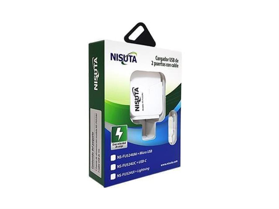 NISUTA FUENTE DE ALIMENTACION 2 PUERTOS USB CARGA RAPIDA 2.4A CON CABLE 1 METRO TIPO C NS-FU524UC