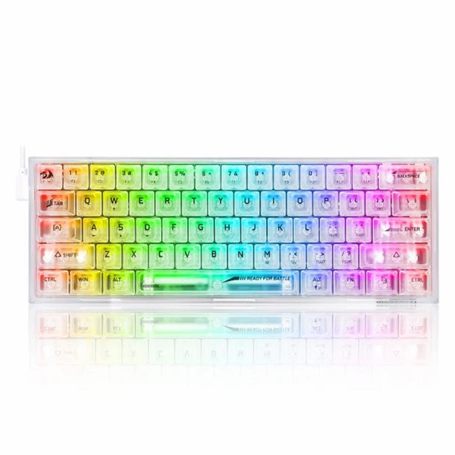 El nuevo teclado cableado con un diseño del 60% de Redragon en un estilo refrescante y transparente con una oferta económica obvia. Compacto de 61 teclas con interruptores transparentes, dedicado a jugadores FPS y trabajo eficiente.