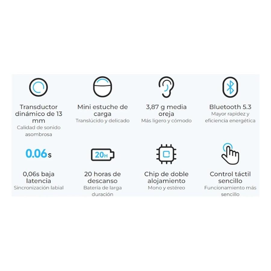 Tiempo de uso: hasta 5 horas (Auricular)/hasta 20 horas (Caja de carga)