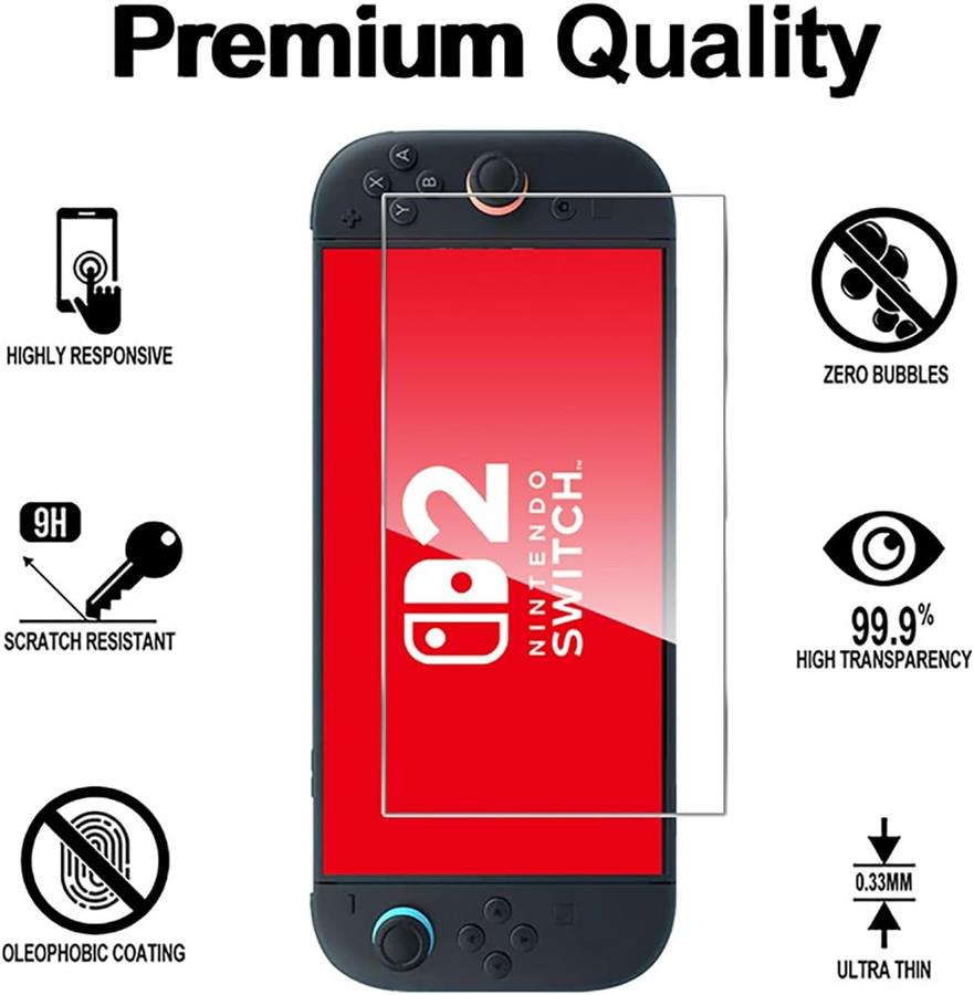 【Contenido del paquete】2 piezas de película protectora de vidrio templado + herramienta de limpieza para "pantalla Nintendo Switch 2". (Debido al borde curvo de la pantalla, la película protectora se diseñará para ser más pequeña que la pantalla)