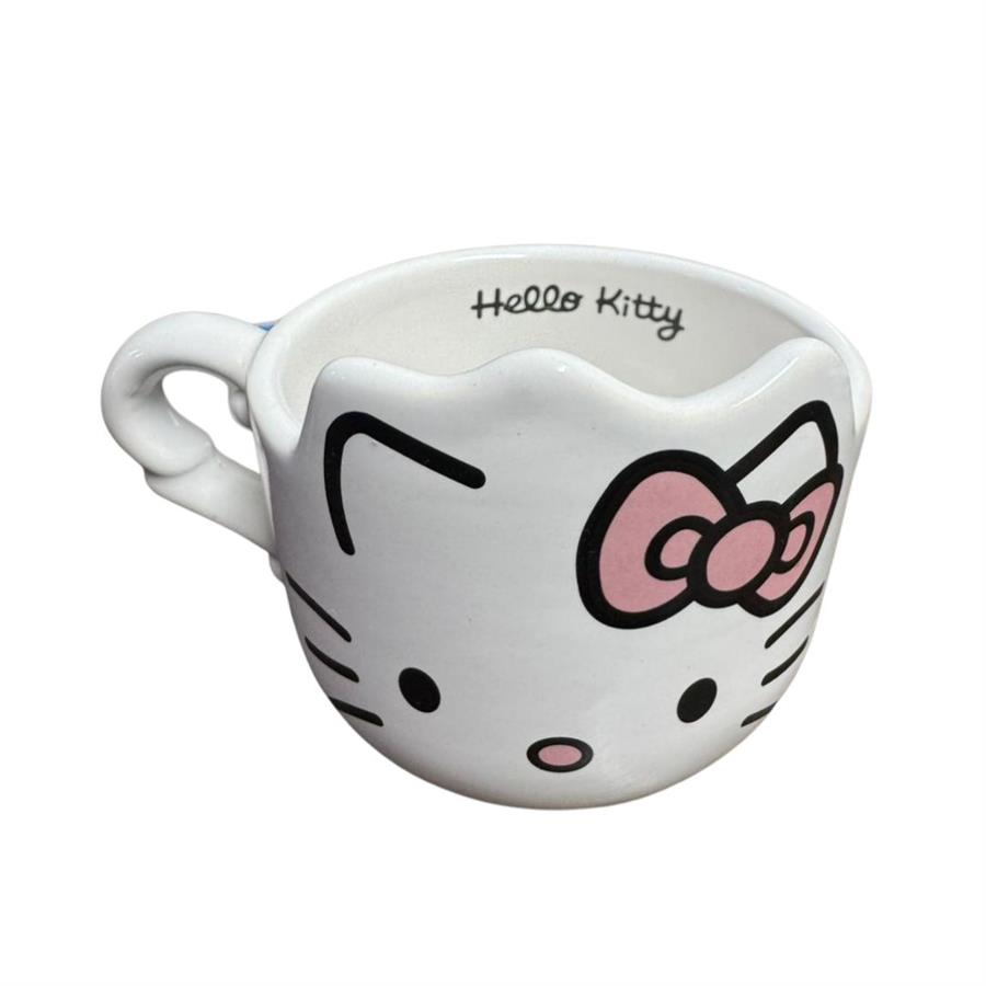 Endulzá tus mañanas con esta encantadora taza 3D de Hello Kitty, con la forma de su icónica cabeza y su clásico moño rojo. Su diseño tridimensional y acabado brillante la convierten en una pieza perfecta tanto para usar como para decorar.