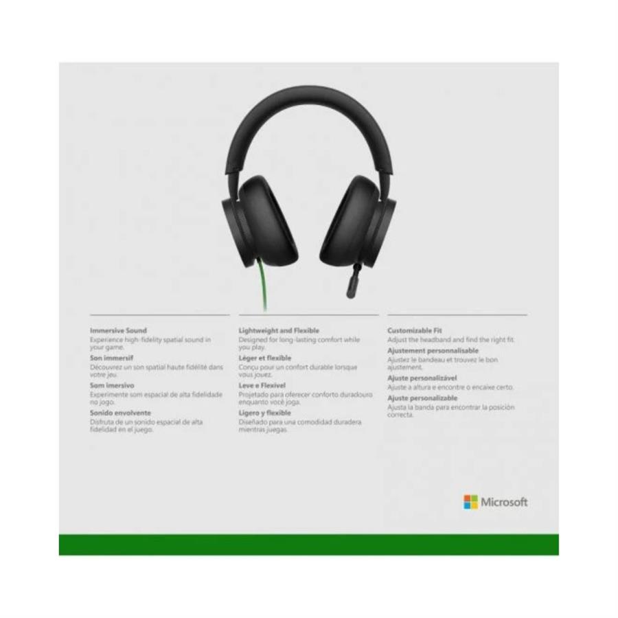 - Juega alto y claro con los Cascos estéreo Xbox, que ofrecen un chat ultranítido y son compatibles con el sonido espacial de alta fidelidad Windows, Dolby Atmos y DTS Headphone:X.