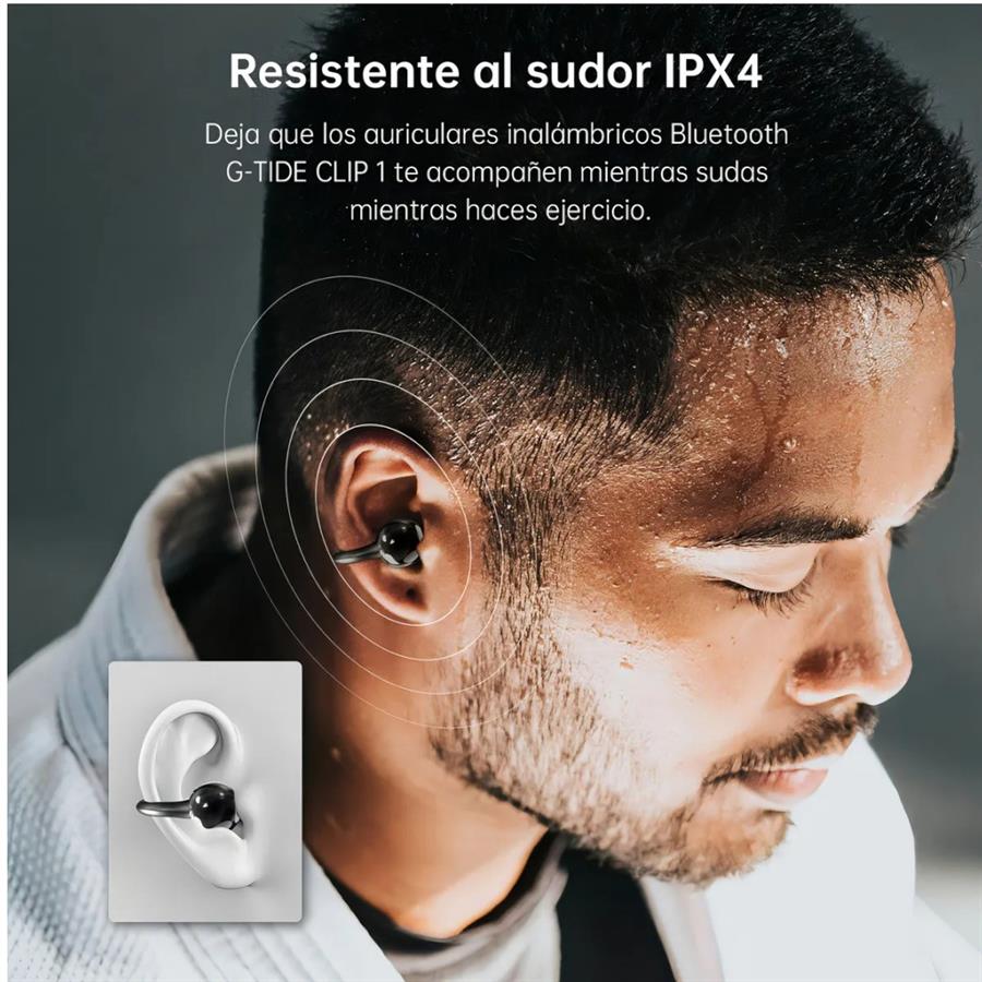 Su diseño de clip para la oreja es estético y funcional.