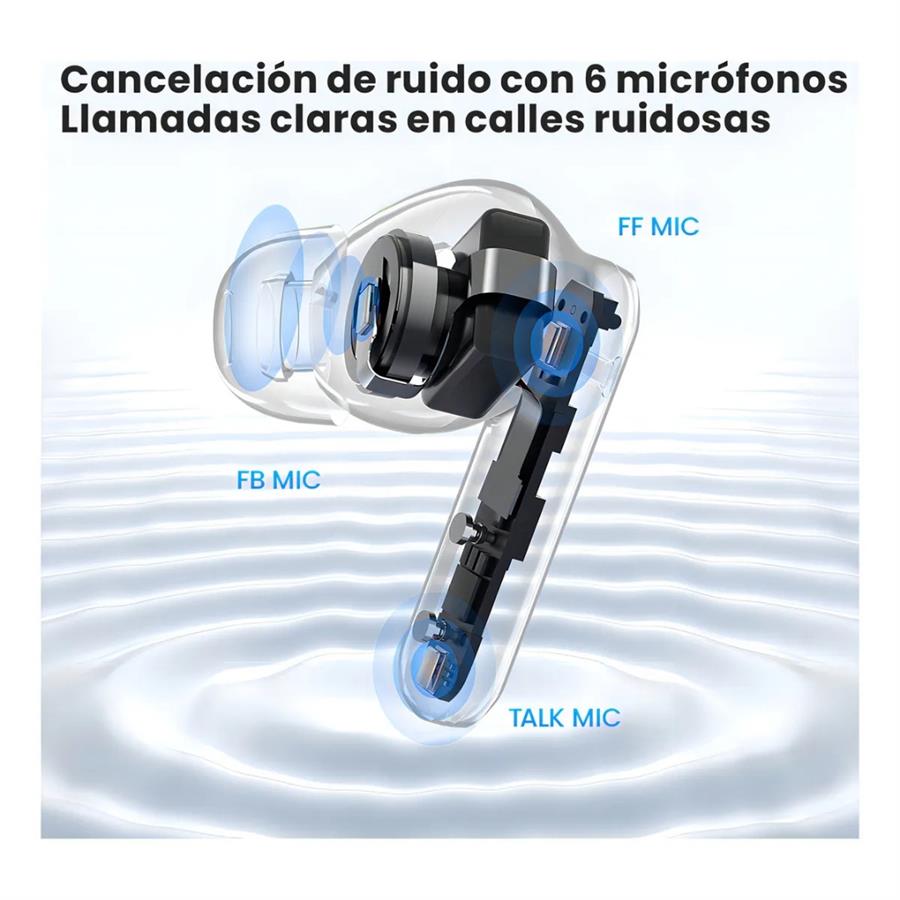 **AURICULARES INALÁMBRICOS HAYLOU MORI PLUS** Contenido del paquete: 1x Auriculares Inalámbricos Mori Plus 1x Repuesto de gomitas en diferentes tamaños 1x Cargador USB A a USB C Llevá tu música, tus llamadas y tus metas al siguiente nivel con los auriculares Haylou Mori Plus. Su diseño vanguardista y ultra-funcional está creado para quienes exigen lo mejor: sonido envolvente, cancelación de ruido inteligente y conexión estable para cada momento de tu día. **Cancelación de ruido activa (ANC)** Con tecnología de cancelación activa de ruido de hasta -43 dB, los Mori Plus te aíslan de lo que te distrae y sumergen en tu mundo. Gracias a sus seis micrófonos y al modo anti-viento, las llamadas salen nítidas incluso cuando el entorno no ayuda. **Conexión** La conexión es Bluetooth 5.4, lo que significa sincronía rápida, mínima latencia y un alcance confiable. **Batería** Cuando los usás con el estuche, podés alcanzar hasta ~35 horas de reproducción continua para que nada te detenga. **Características** Conectividad: Bluetooth 5.4 Cancelación activa de ruido (ANC): hasta -43 dB de profundidad Micrófonos: 6 (3 por auricular) para llamadas y reducción de ruido ambiental Batería (con estuche): hasta ~35 horas de reproducción Puerto de carga: USB-C Alcance de comunicación: hasta ~10 m en ambiente abierto Peso aproximado: 39 g Compatible con sistemas: iOS / Android **Carga:** Voltaje del cargador y requisitos de corriente: 5V / 1A En caso de que no se respete podría afectar la autonomía de la batería. No usar cargador de carga rápida.