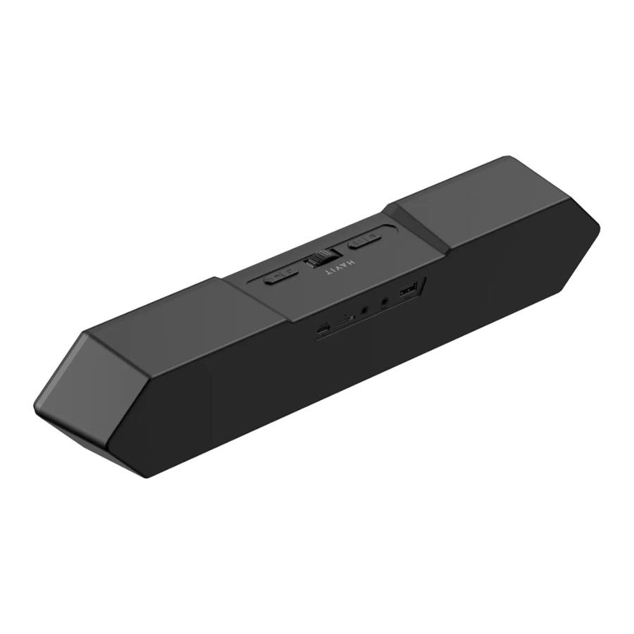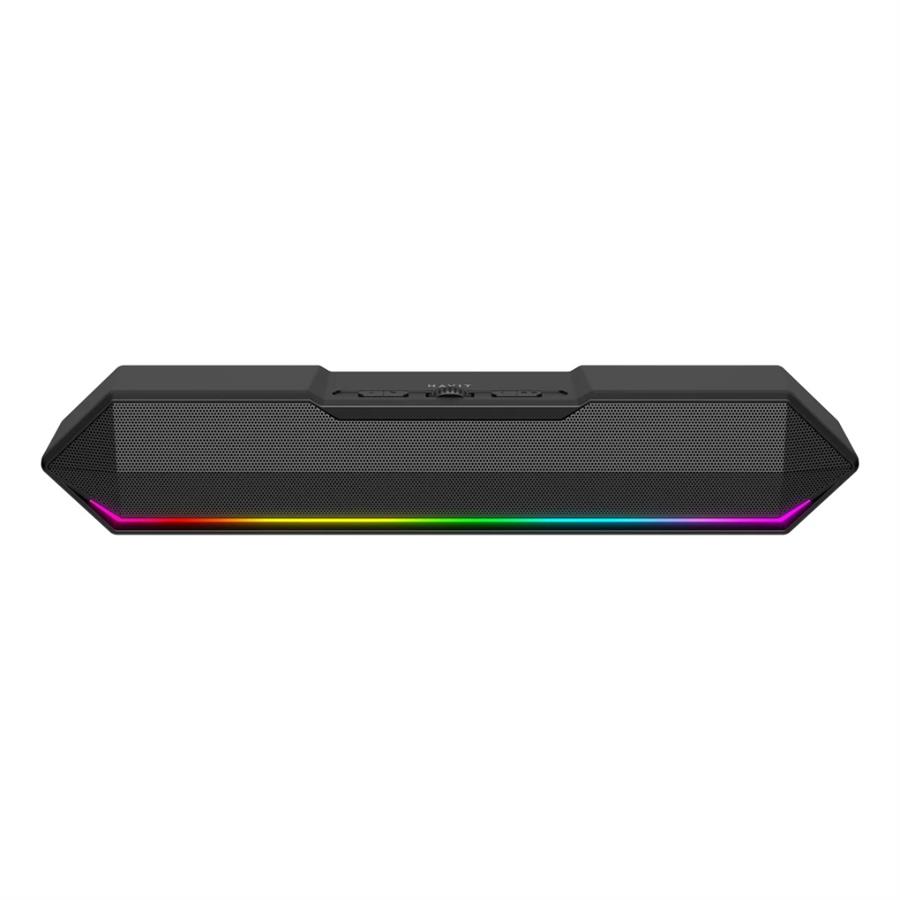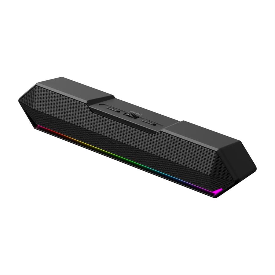 Barra de Sonido Inalámbrica RGB Havit SK772BT La barra de sonido Havit SK772BT combina potencia, conectividad y diseño moderno en un solo dispositivo. Ideal para mejorar la experiencia de audio en tu escritorio o setup gaming, gracias a su sonido estéreo, conexión inalámbrica BT 5.3 y una atractiva iluminación RGB. Características destacadas: Sonido estéreo potente de 10W Iluminación LED RGB integrada Diseño moderno y multifuncional Botón de volumen accesible Compatible con dispositivos inalámbricos y con conexión por cable Especificaciones técnicas: Versión inalámbrica: BT 5.3 Potencia de salida: 5W x 2 (10W total) Batería: 3.7V / 1200 mAh Tiempo de reproducción: hasta 4 horas (volumen medio) Tiempo de carga: 2 horas Conectividad: Inalámbrica, AUX, tarjeta TF, USB Ideal para quienes buscan una experiencia de sonido potente con estilo y practicidad.