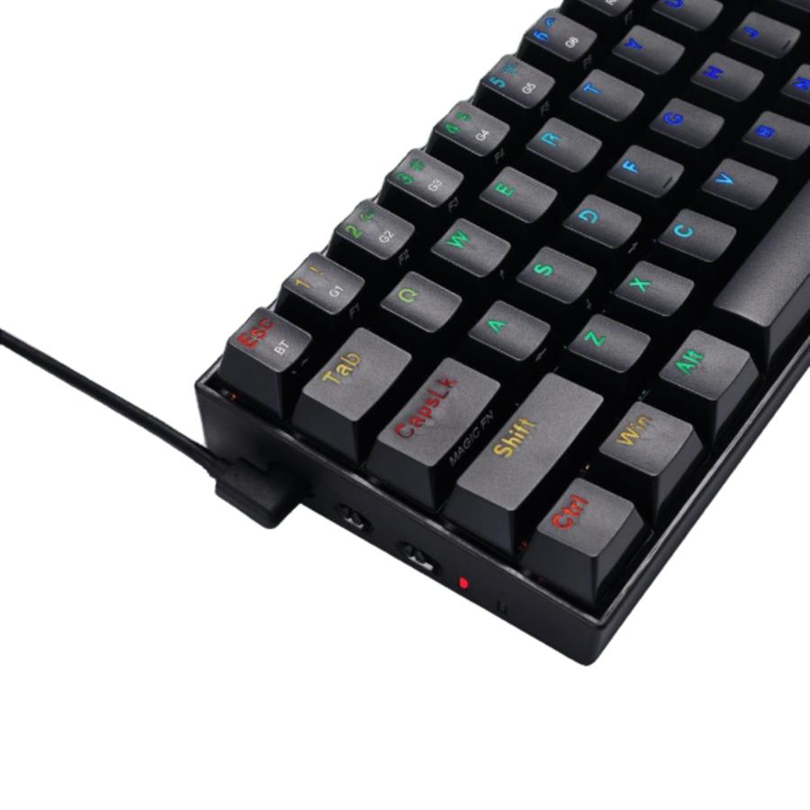 El Draconic es un teclado de 60% que cuenta con 61 teclas con switches Outemu MK2 Brown, un switch balanceado de sensación táctil y poco audible, con una fuerza de actuación necesaria de tan solo 45 gramos, obtendremos una respuesta infalible tanto para jugar como para el uso cotidiano.