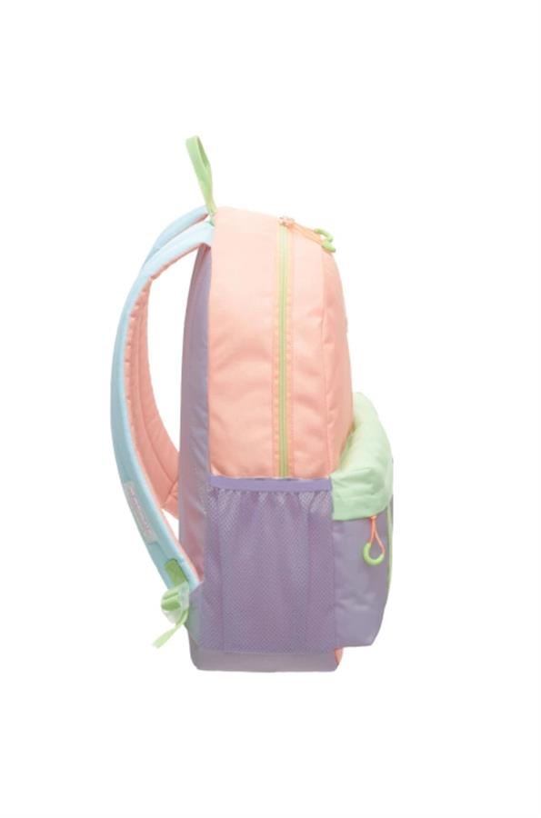 Compartimento principal y bolsillos frontales con cierre de plástico a tono.