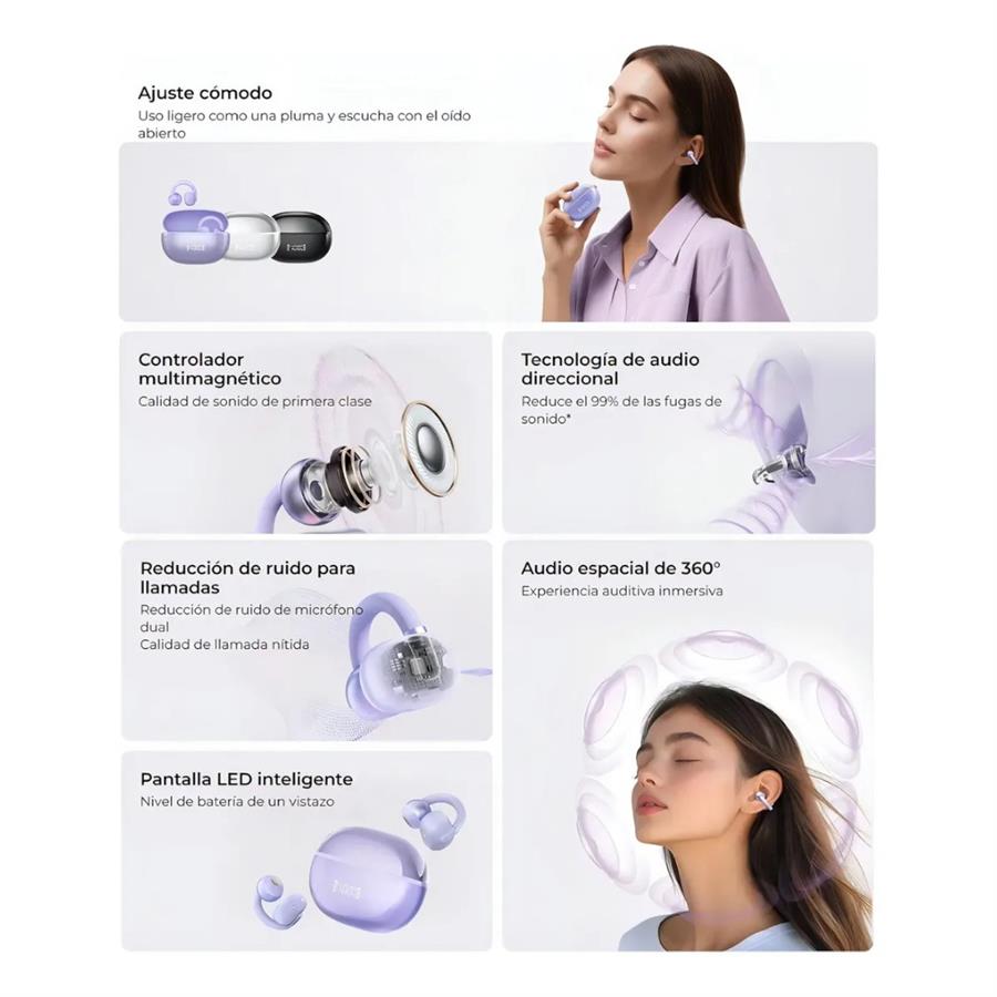 Los Auriculares Inalámbricos Haylou Airfree OW03 en color blanco son la elección perfecta para quienes buscan comodidad y calidad de sonido. Su diseño de formato open-ear permite una experiencia auditiva envolvente sin aislarse del entorno, ideal para quienes desean mantenerse conectados mientras disfrutan de su música o realizan actividades diarias. Equipados con tecnología Bluetooth, estos auriculares ofrecen una conexión rápida y estable.